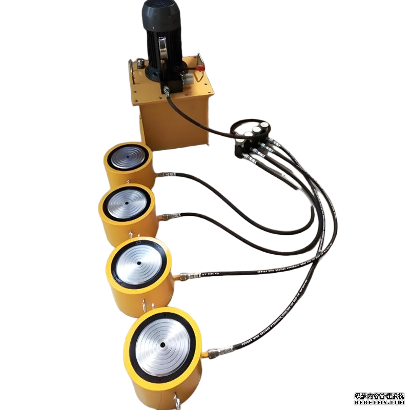 本公司生产的电动同步千斤顶,设计有安全保压装置,内置卸压阀防止过载,以保护千斤顶以利于安全操作。并设计四组截止阀,可随时控制千斤顶同步升与降,该装置的连接,采用的是高压胶管和螺纹接头连接,具有使用快捷,并克服快速传统接头漏油缺点主要用于电力、建筑、机械制造、矿山、铁路桥梁、造船等多种行业的设备安装起顶拆卸作业。